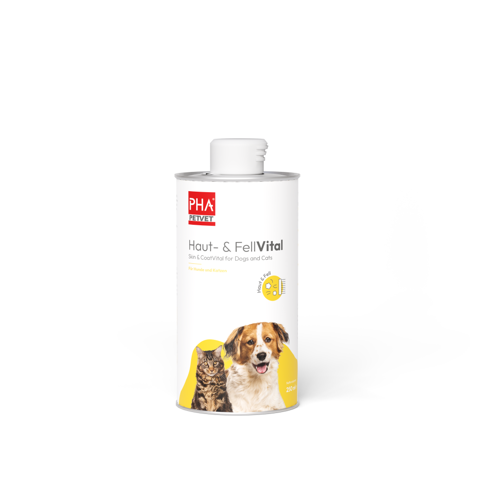 Mit PHA Haut- & FellVital erhält Ihr Tier ausreichend wertvolle und lebenswichtige OMEGA-3-Fettsäuren. Mangelerscheinungen werden durch die Wirkung der enthaltenen Linolensäure effektiv vorgebeugt. PHA Haut- & FellVital unterstützt die Hautfunktion und wirkt einem übermäßigen Haarausfall entgegen. Die in PHA Haut- & FellVital ebenfalls enthaltenen Zusatzstoffe Lecithin und Vitamin E erleichtern dabei die Aufnahme dieser Fettsäuren und ihre Verteilung im Körper.