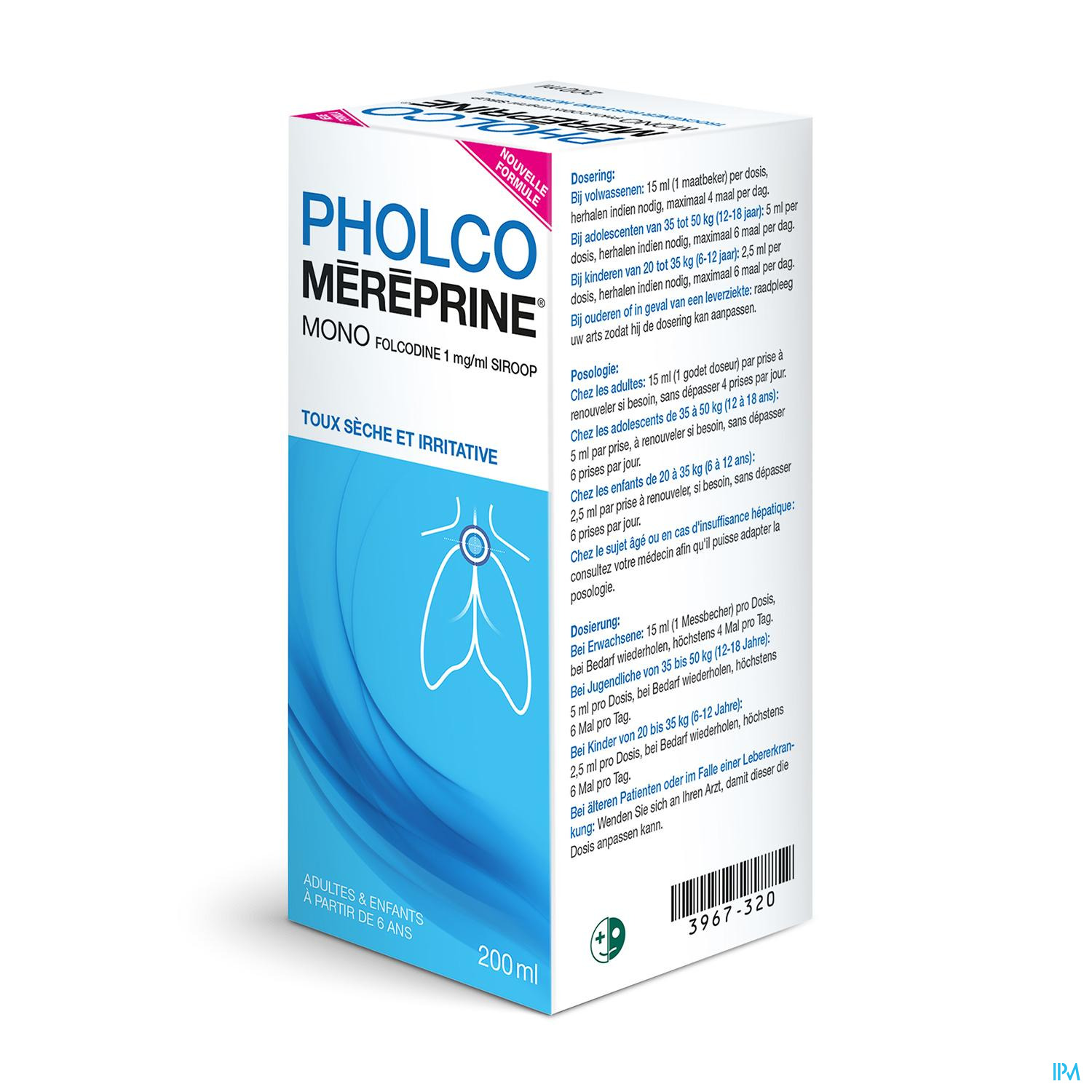 Dieses Medikament hat eine antitussive Wirkung. Es soll trockenen Husten und Reizhusten lindern. Pholco-Méréprine Mono ist für Erwachsene, Jugendliche und Kinder ab 6 Jahren gedacht.