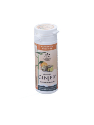 Ingredients per gum: Bulking agents: gum arabic, sorbitol syrup, beta-cyclodextrin, maltitol syrup – Standardized dry extract of ginger * (Zingiber officinale) 25 mg – Natural flavors: lemon, mint, eucalyptus – Sweeteners: sucralose, glycosides of steviol. Coating agents: coconut oil, carnauba wax.
