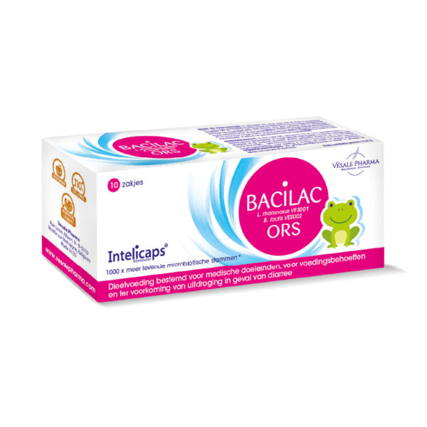 Prevents and treats dehydration caused by acute diarrhea. Bacilac ORS also contains L. rhamnosus and B. lactis for optimal restoration of the intestinal flora after an episode of diarrhea.
